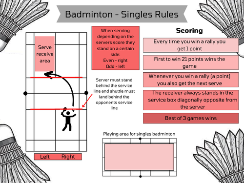 Badminton single and doubles scoring rules Teaching Resources
