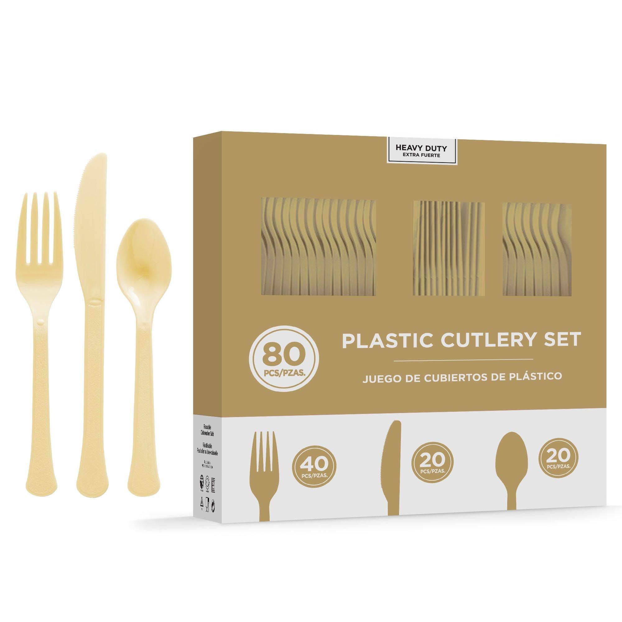 Gold Heavy Duty Plastic Cutlery Set for 20 Guests 80ct
