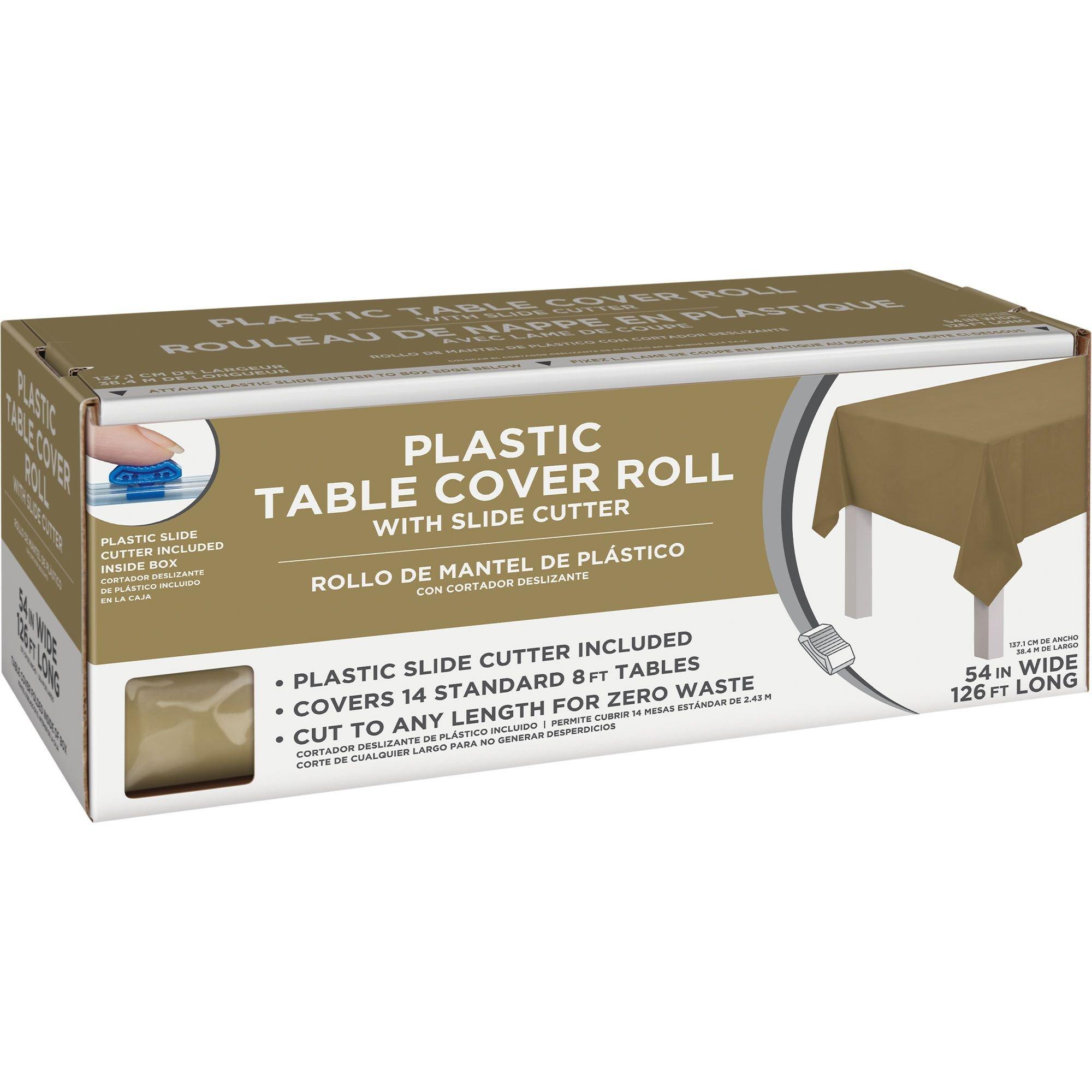 Gold Plastic Table Cover Roll with Slide Cutter 54in x 126ft