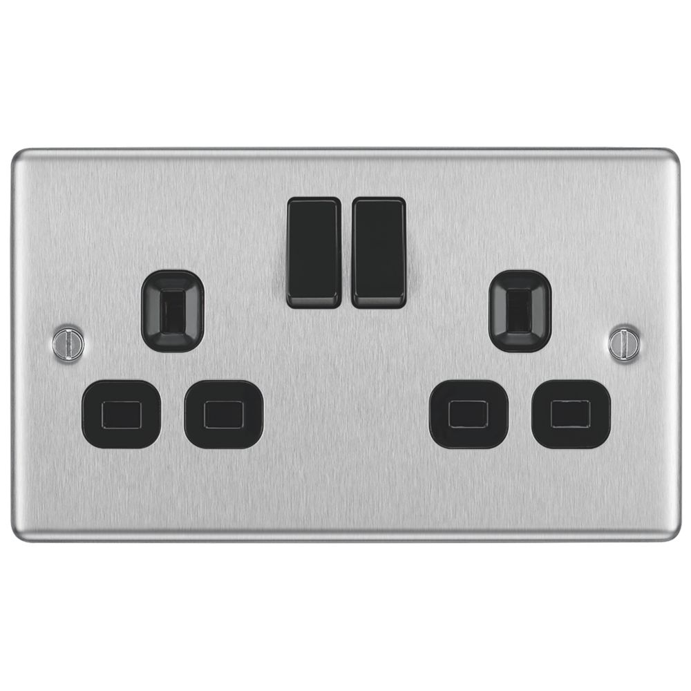 Brushed stainless hot sale steel sockets, NEXUS BRUSHED STEEL 13A 2 GANG SWITCHED SOCKET GREY hot sale