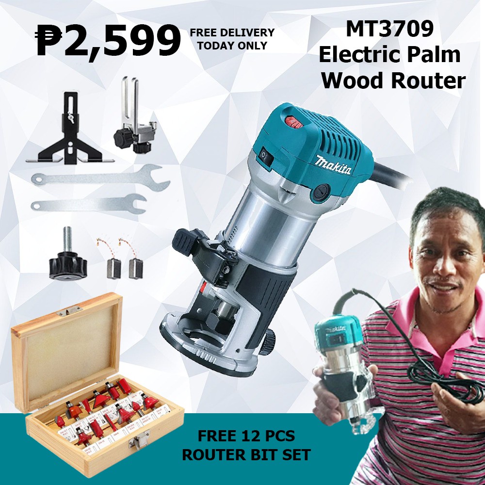 Makita Palm Wood Router Electric Hand Trimmer 530W with Router Bit