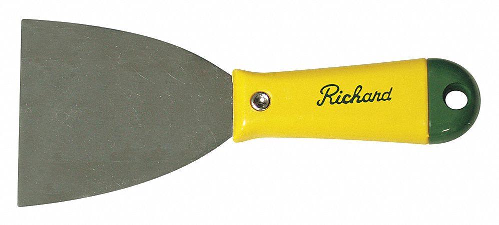 PUTTY KNIFE FLEXIBLE 1 EDGE YELLOW GREEN 3 IN WIDE POLYPROPYLENE HIGH CARBON STEEL