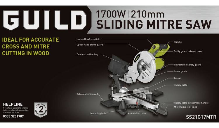 Guild 1700w hot sale sliding mitre saw, Buy Guild 210mm Sliding Mitre Saw with Laser 1700W Saws Argos hot sale
