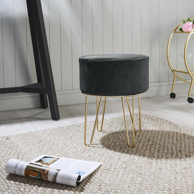 Home Collections Small Velvet Footstool Grey Homewear Homestyle