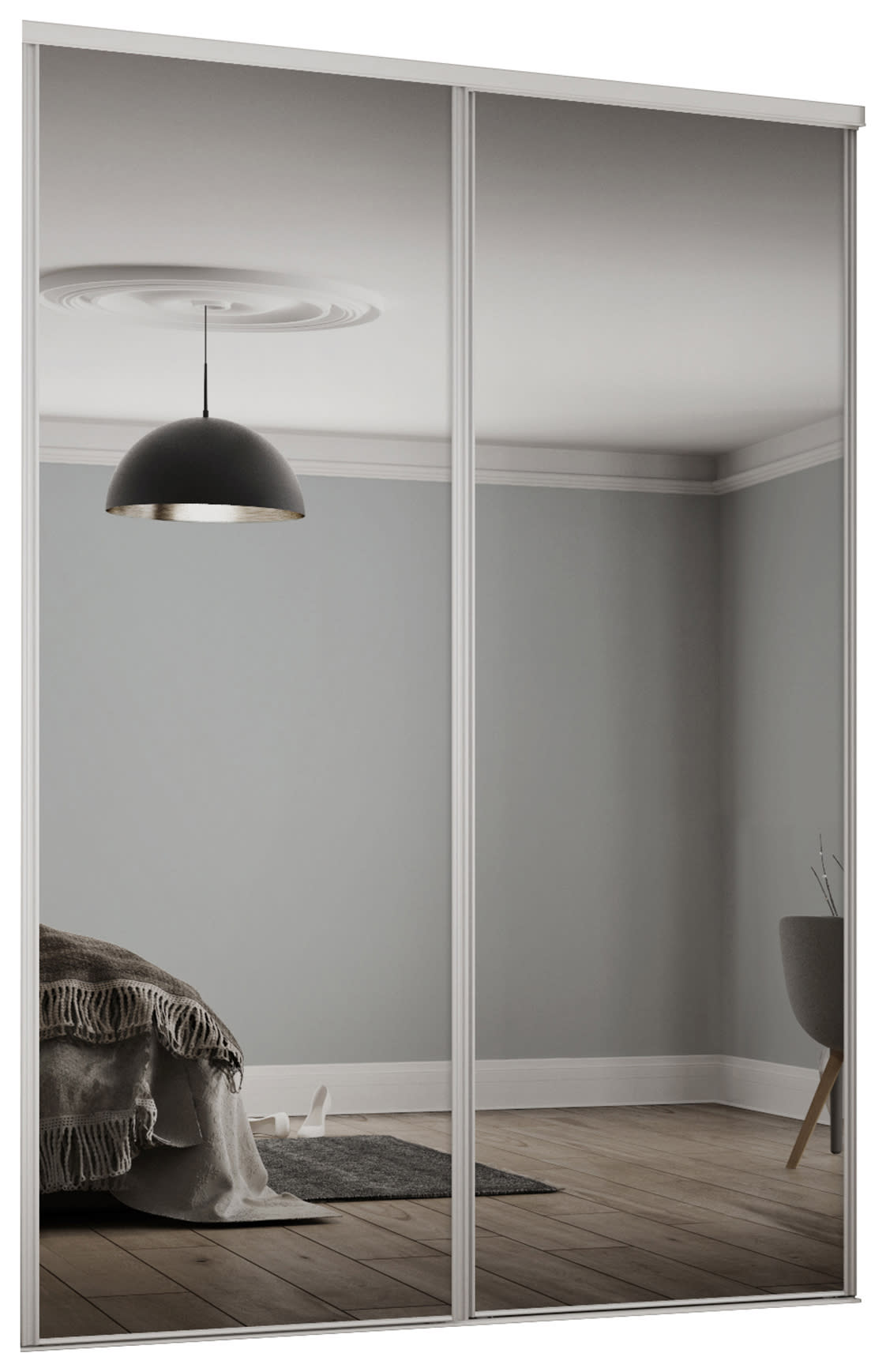 Spacepro Minimalist Sliding Wardrobe Door 2 Panel Silver Frame