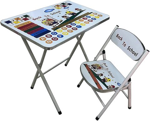 Kids Educational Table and Chair Set Metal Desk Chair Folding Multipurpose Table Chair Table Chair Set for Growing Kids White