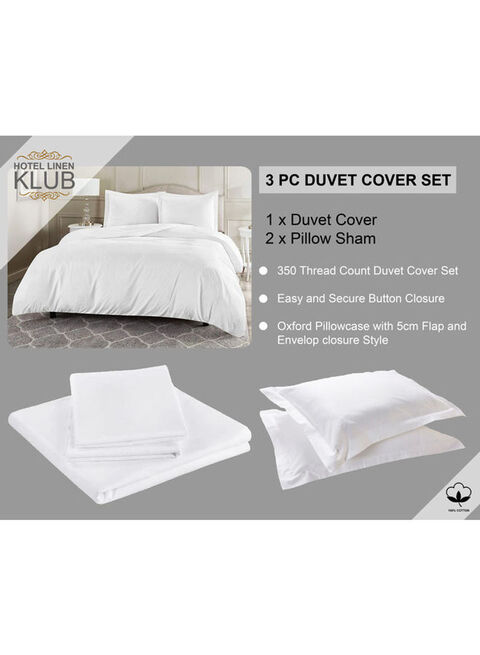 Buy Hotel Linen Klub 3 Piece Queen Duvet Cover Set Cotton White