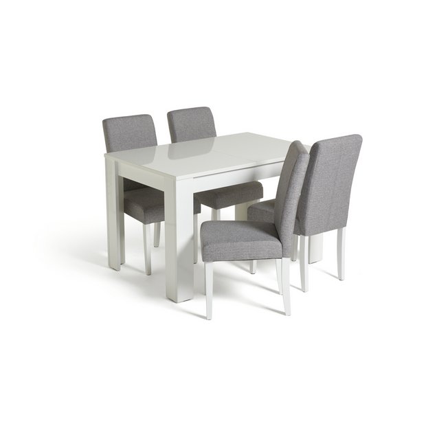 Buy Argos Home Miami Gloss Extending Table 4 Tweed Chair Grey Dining table and chair sets Argos