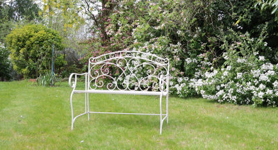 Metal Garden Bench Decorative Cream Kings Gothic 2 Seater