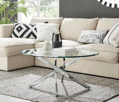 Round glass hot sale coffee table silver