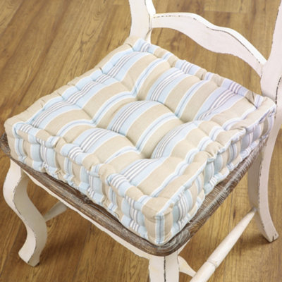 Set of 4 Blue Striped Outdoor Garden Chair Box Seat Pad Cushions