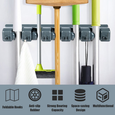 Costway Wall Mounted Broom Holder Mop Hanger Holder with 6 Hooks