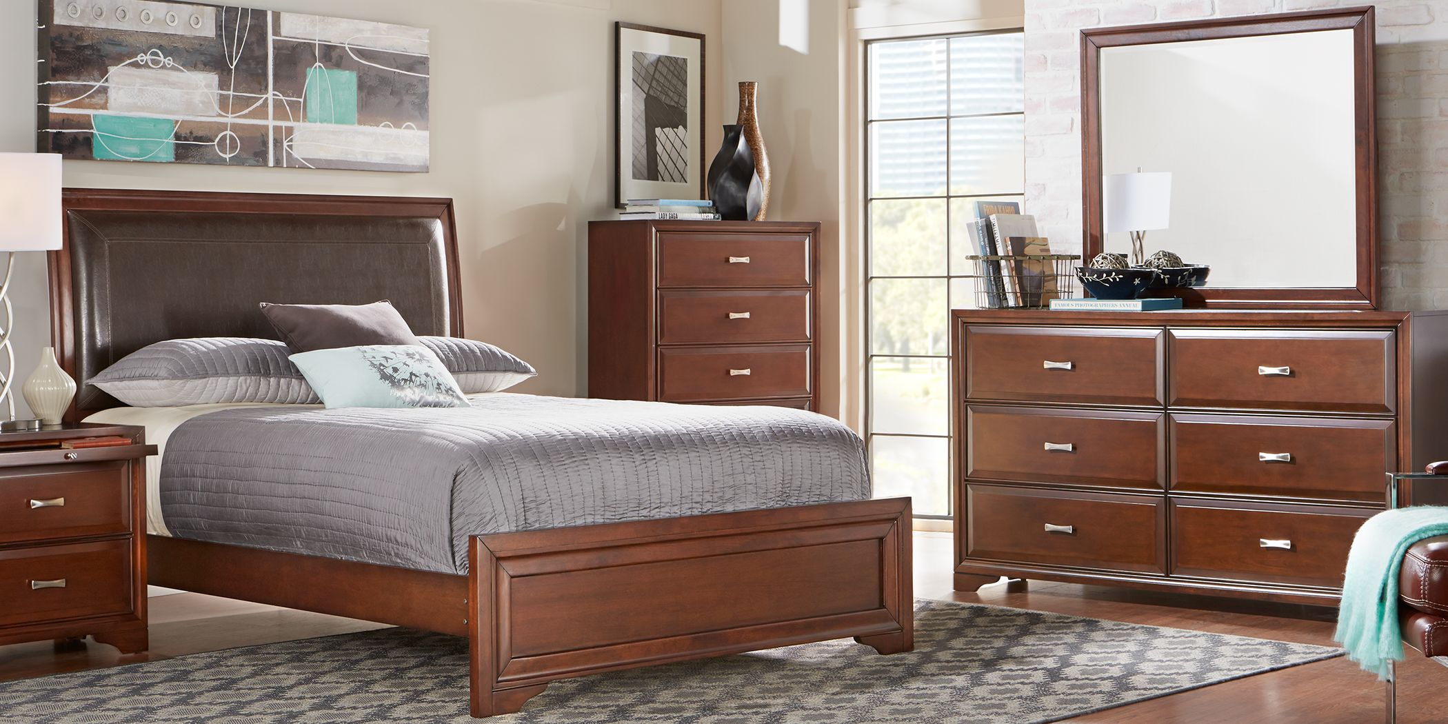 Belcourt Cherry 6 Pc Queen Upholstered Bedroom Rooms To Go