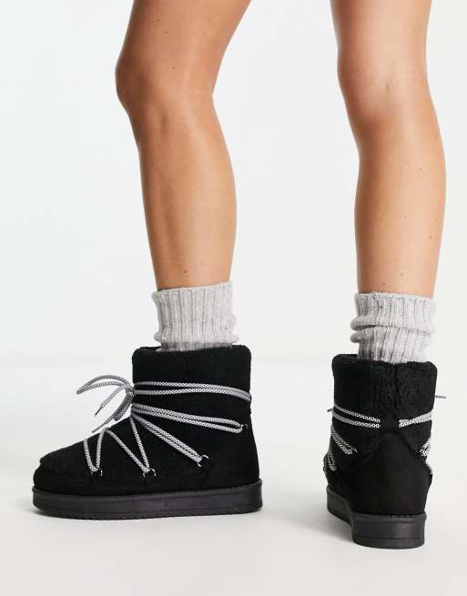 South Beach padded borg sherpa snow boots in black