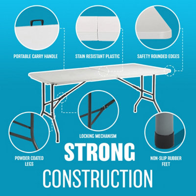 6Ft Heavy Duty Folding Table Portable Plastic Camping Garden Party Catering Outdoor Indoor Use