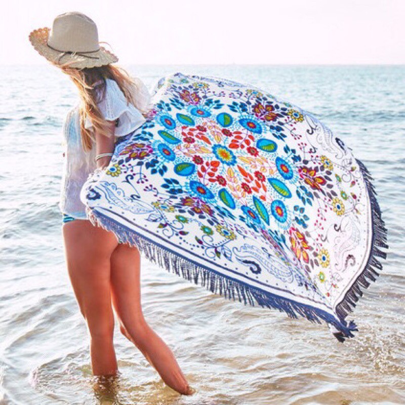 COD Round Beach towel beach mat tableclo cotton with tassel