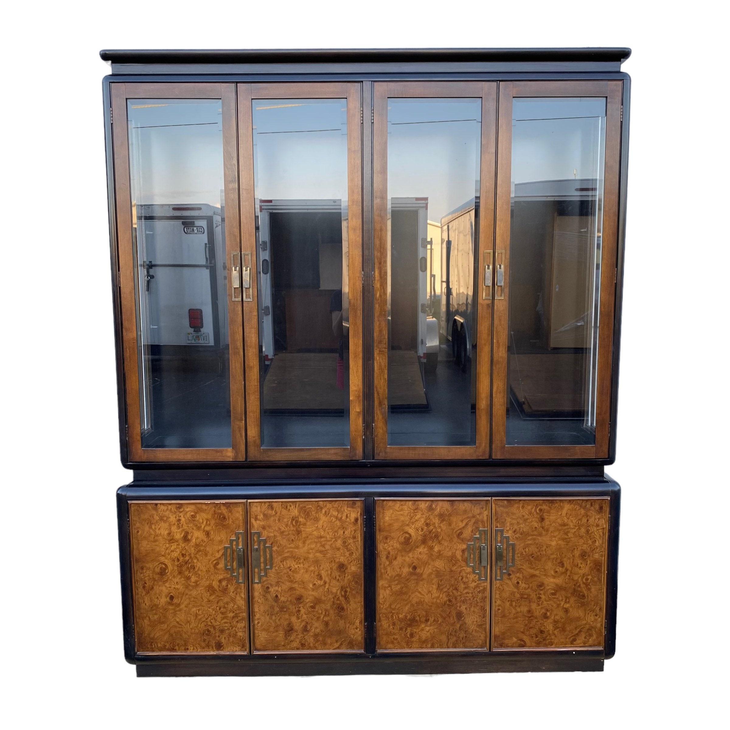 Chinoiserie China Cabinet by Bernhardt with Burl Wood Lighted