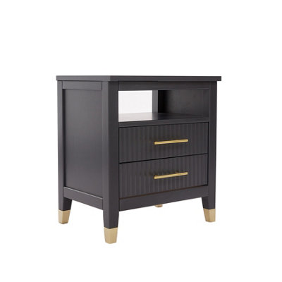 Arlo Charcoal Wooden 2 Drawer Bedside Table Happy Beds
