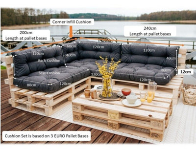 Garden Outdoor Pallet Cushions EURO Corner Sofa 200x240 Grey
