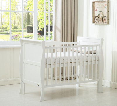 MCC Direct Orlando Cotbed White Wooden Baby Cot Bed with Mattress