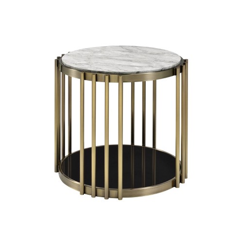 Jaipur Round End Table Brass gold And Marble Steve Silver Co