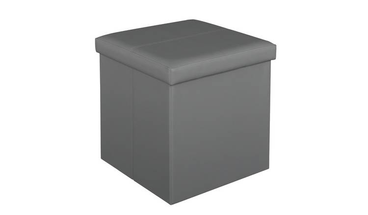 Buy Argos Home Small Faux Leather Stitched Ottoman Grey Ottomans and storage benches Argos