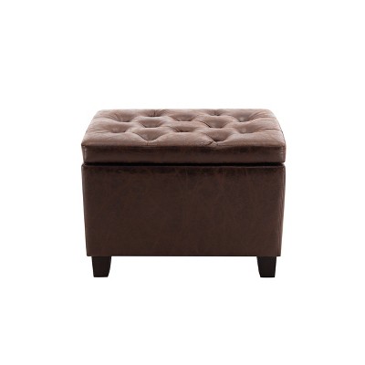 Tufted leather hot sale storage ottoman