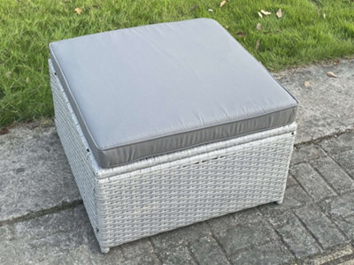 Fimous Light Grey Rattan Footstool Patio Outdoor Garden Furniture