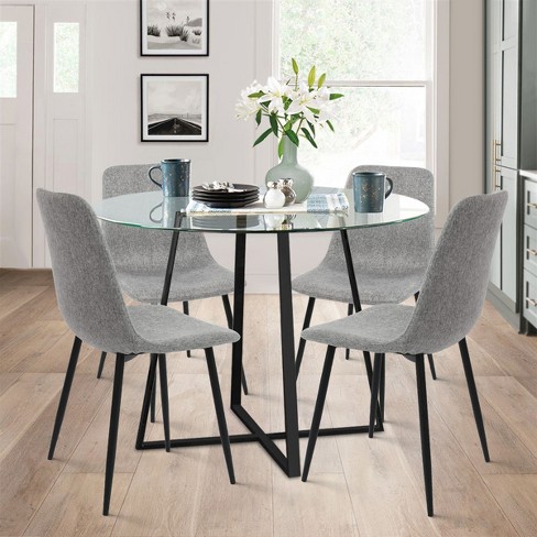 Hana Bingo 5 piece Round Clear Glass Dining Table Set With 4