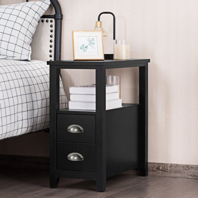 Costway 2 Drawers Narrow Side End Table Corner Storage Nightstand Compact Display Shelf