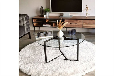 Round Transparent Glass Black Leg Coffee Table Clear Coffee Table Modern Side Center Tables for Living Room Living Room Furniture