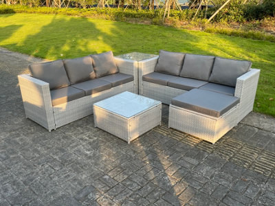 Fimous 7 Seater Wicker Light Grey Rattan Garden Corner Furniture