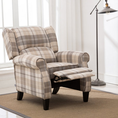 Eaton Wing Back Fireside Tartan Fabric Recliner Manual Armchair