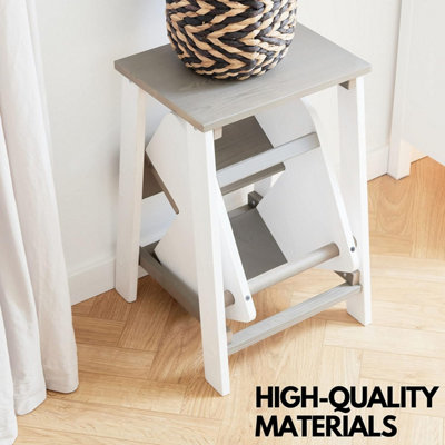 Portable 3 Step Grey Folding Stool 60cm High Wooden Step ladder