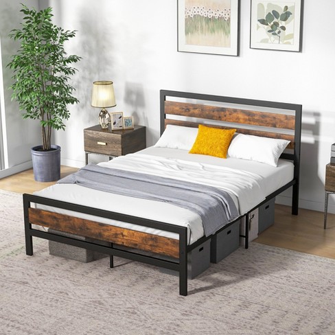 Costway Full queen Industrial Metal Platform Bed Frame Rustic