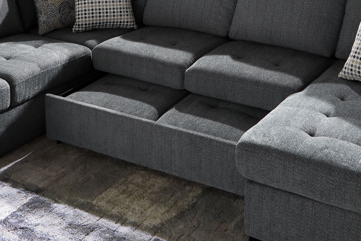 Kenna 3 Piece Sectional w Sleeper Charcoal Fabric