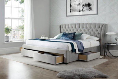 Grey velvet hot sale bed with drawers