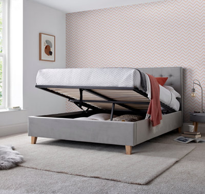 Kingham Grey Velvet Ottoman Bed Small Double DIY at B Q