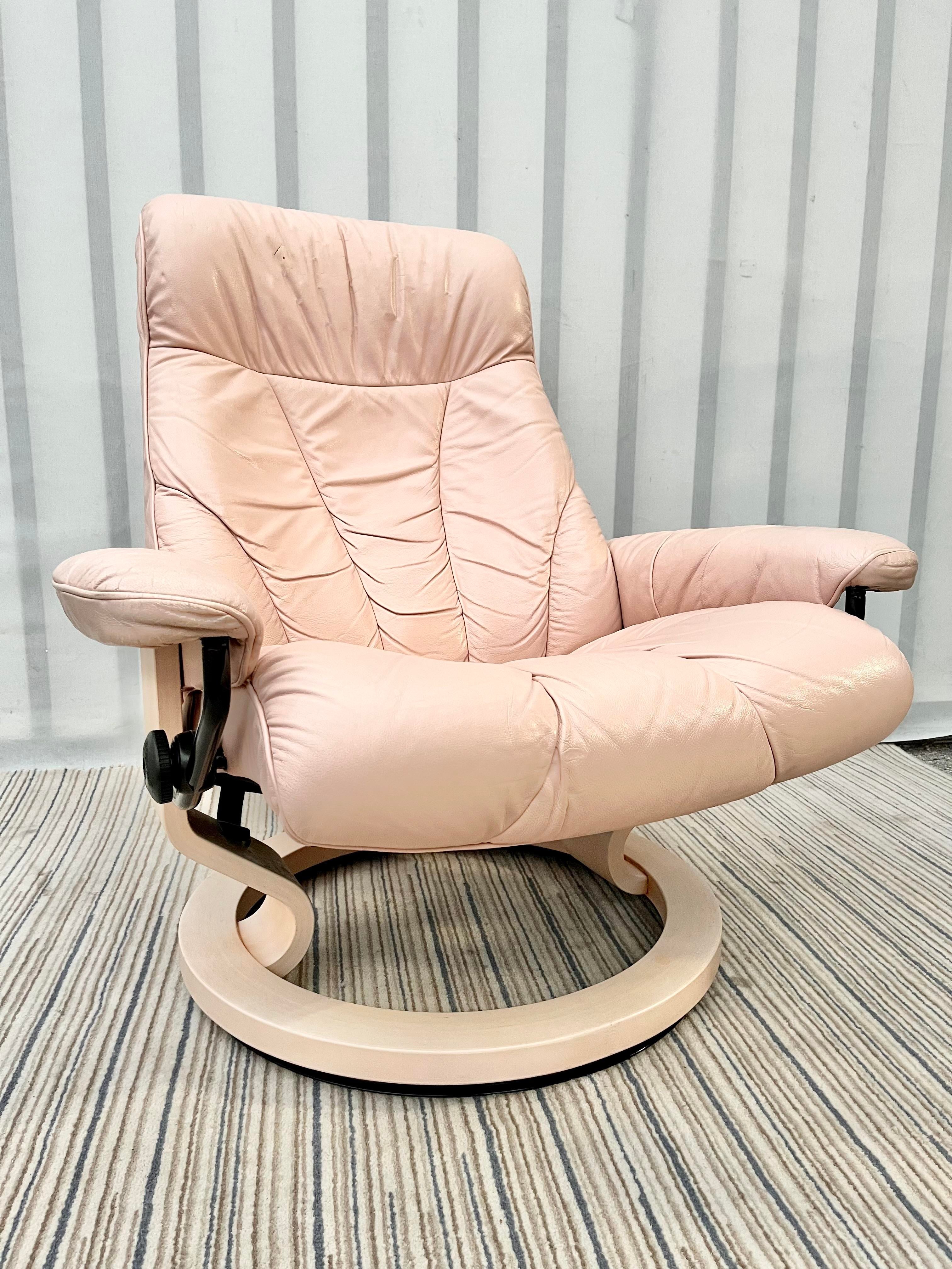 Vintage Pink Leather Lounge Chair and Ottoman Set by Ekornes