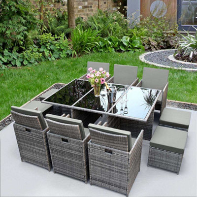 RayGar Deluxe 11 Piece 10 Seater Rattan Cube Dining Table Garden