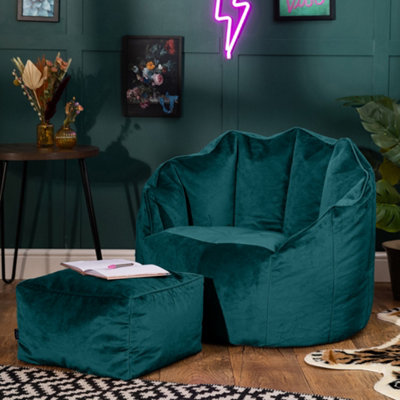 icon Sirena Scallop Chair Bean Bag and Footstool Teal Green Velvet