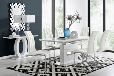 White extending dining table hot sale and 6 chairs