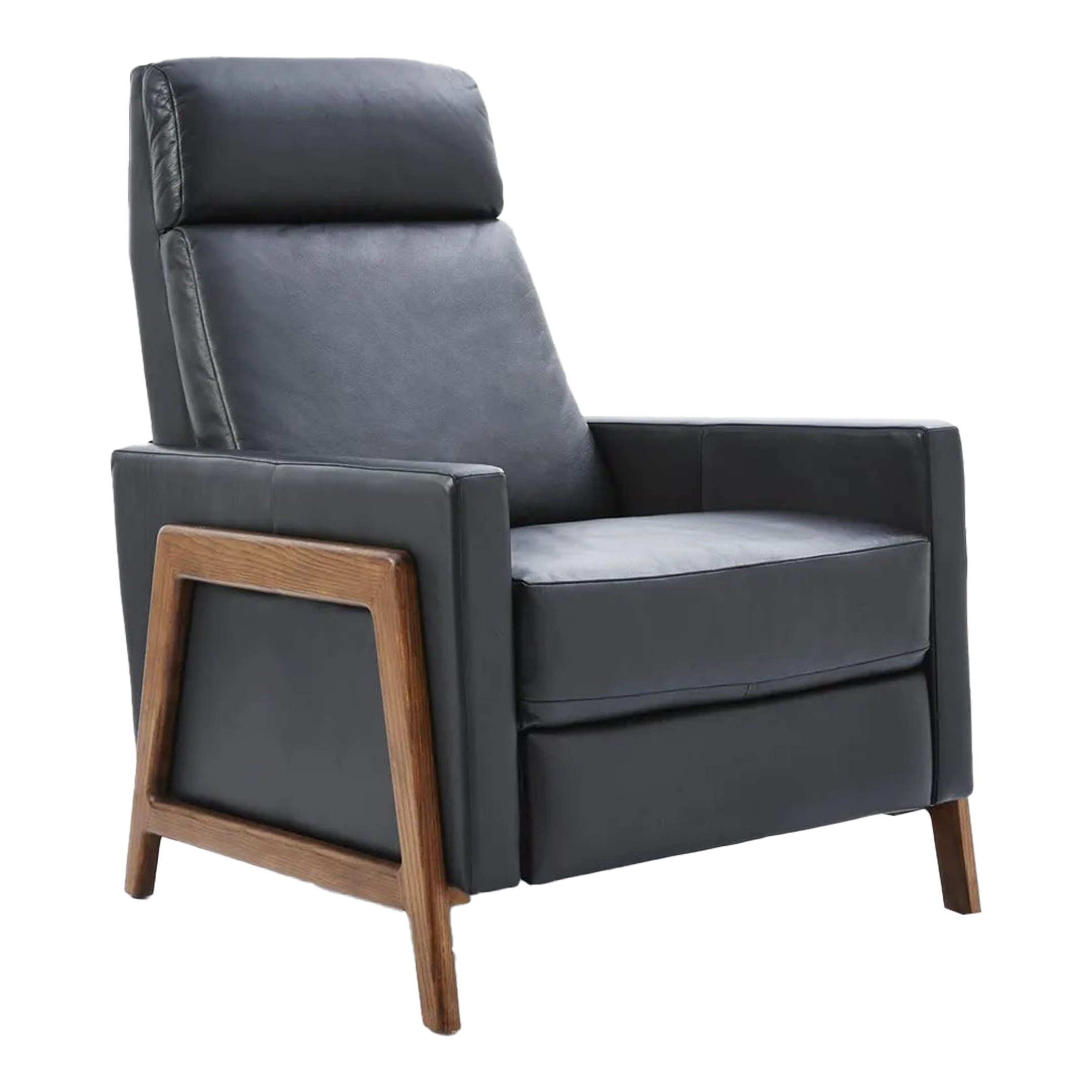 West Elm Spencer Wood Framed Leather Recliner AptDeco