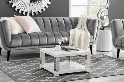 Anzio Square White High Gloss and Silver Chrome Small Coffee Table