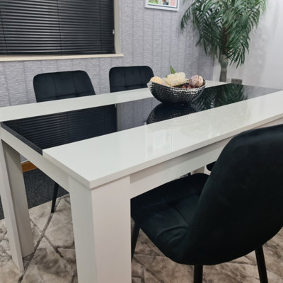 Dining Table Set Of 4 Wooden White Black Table Tufted Velvet Black Chairs