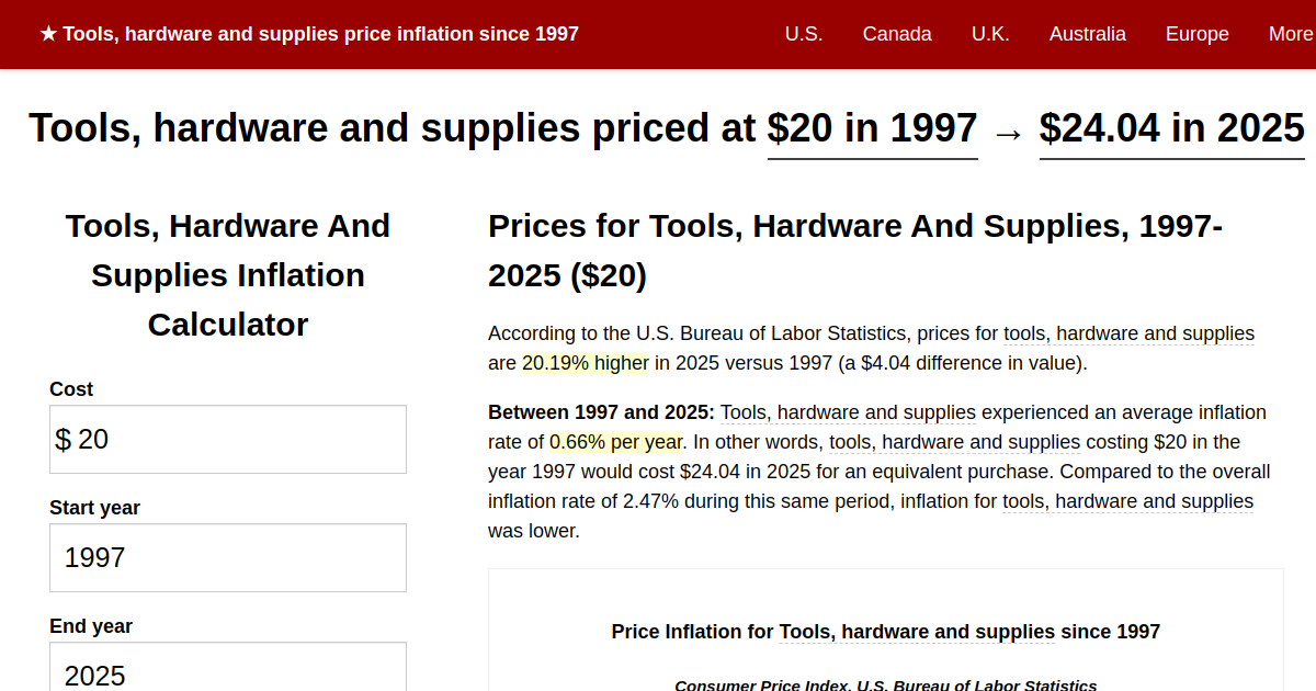Tools hardware and supplies price inflation 1997 2024
