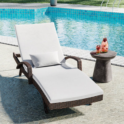 Livingandhome Rattan Effect All Weather Resistant Sun Lounger