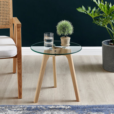 Malmo Side Table Small 40cm Round Glass and Wood Legs eBay