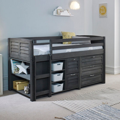 Cozy Grey Solid Wooden Mid Sleeper Storage Single Bed Ladder on