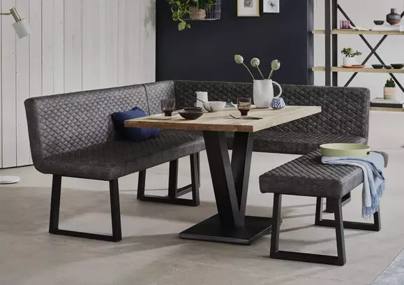 Grigio Fixed Dining Table and Right Hand Facing Corner Bench Dining Set
